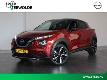 Met een auto als deze Nissan Juke komt u absoluut goed voor de dag. De aandrijving komt voor rekening van een benzinemotor en een handgeschakelde zesversnellingsbak. Ook 19 inch lichtmetalen velgen, LED koplampen, in hoogte verstelbare passagiersstoel, extra getint glas, in delen neerklapbare achterbank en LED-achterlichten horen tot de voorzieningen op deze auto. Soepel inparkeren gaat gemakkelijker dan u verwacht dankzij de achteruitrijcamera. Vanaf elke plek contact maken met deze auto: dat kan met behulp van remote services, die u simpel activeert met uw smartphone. In deze auto beschikt u natuurlijk over een full map navigatiesysteem. Het audio-installatiesysteem met DAB-radio biedt glasheldere geluidskwaliteit. U bedient dit veilig, via het stuurwiel of met spraakbediening. Deze Nissan Juke is voorzien van sensoren aan de achterzijde om een achteropkomend verkeer waarschuwing te geven als de afstand tussen u en een achterligger te klein is. Nooit meer te warm of te koud. De automatische airconditioning zorgt altijd voor de temperatuur die u kiest. Ook regensensor, cruise control, keyless entry, automatisch dimmende binnenspiegel, lederen stuur en boordcomputer horen tot de voorzieningen op deze auto. Zoals u mag verwachten van deze Nissan Juke is hij uitgerust met een reeks aan actieve veiligheidssystemen. Bij de veiligheidssystemen van deze auto hoort ook de verkeersbord-detectie. Die leest tijdens het rijden als het ware met u mee en attendeert u op de significante verkeersborden langs en boven de weg. Het Lane-keeping systeem registreert permanent of u binnen de lijnen van de rijstrook blijft; dwaalt u onbedoeld af, dan waarschuwt het systeem en corrigeert de koers. Het risico van een kop-staartbotsing wordt aanzienlijk verminderd door de forward collision warning. U bent mede dankzij hill hold functie, brake assist en bandenspanningcontrolesysteem steeds veilig onderweg. We kunnen ons voorstellen dat een proefrit wilt maken met deze auto. Belt u ons snel? Disclaimer Hoewel alle gegevens met de grootst mogelijke zorgvuldigheid zijn samengesteld, is Steza niet aansprakelijk voor enige directe of indirecte schade die kan ontstaan door het gebruik van deze informatie. Alle informatie is onder voorbehoud van druk-, zet-, prijs- en programmeerfouten. Steza Hengelo is onderdeel van Steza, de grootste Nissan-dealer van Oost-Nederland. Vanuit onze vestiging in Hengelo staan wij dagelijks voor u klaar bij de aanschaf van een nieuwe Nissan of een passende bedrijfswagen. Als officieel Nissan-dealer vertegenwoordigen wij het merk met trots. U vindt bij ons een uitgebreid aanbod aan nieuwe modellen, waaronder 100% elektrische auto’s zoals de Nissan Micra en Ariya. Ook bieden wij elektrische bedrijfswagens en mobiliteitsoplossingen van andere merken. Onze werkplaats in Hengelo is volledig ingericht voor vakkundig onderhoud en reparaties aan voertuigen van alle merken. Of het nu gaat om regulier onderhoud, elektrische aandrijving of bedrijfswagens – uw auto is bij ons in betrouwbare handen. Wij zijn aangesloten bij de BOVAG en de Nationale Auto Pas, wat garant staat voor transparantie, kwaliteit en gemoedsrust. Daarnaast helpen wij u graag met de verzekering en/of financiering van uw nieuwe auto. Bij Steza Hengelo combineren we persoonlijke service met professionele expertise. U bent van harte welkom!